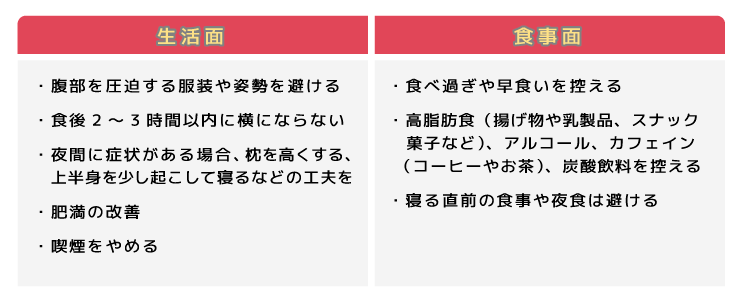 また、食道から胃に食物を送る働きが弱まっている人は、逆流した胃酸をもとに戻しにくくなるため、食道に胃酸が留まりやすくなります。