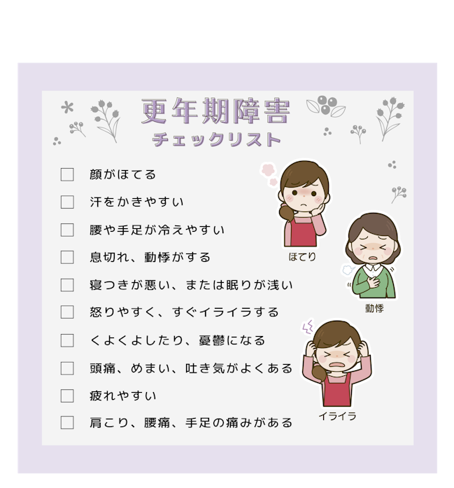 更年期の間は急激なホルモンバランスの変化が起こるため、さまざまな症状があらわれます。