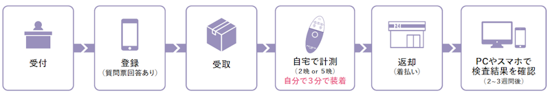 ①病院での入院検査不要、自宅で簡単に睡眠計測できます。